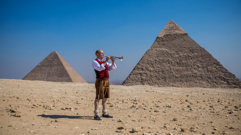 Trompete vor den Pyramiden von Gizeh, siehe oben. So beginnt ÜBER UNTERBIBERGER, der Eröffnungsfilm der Hofer Filmtage. Der Untertitel: Vom Woid in die Welt. Regie: Matthias Ditscherlein.