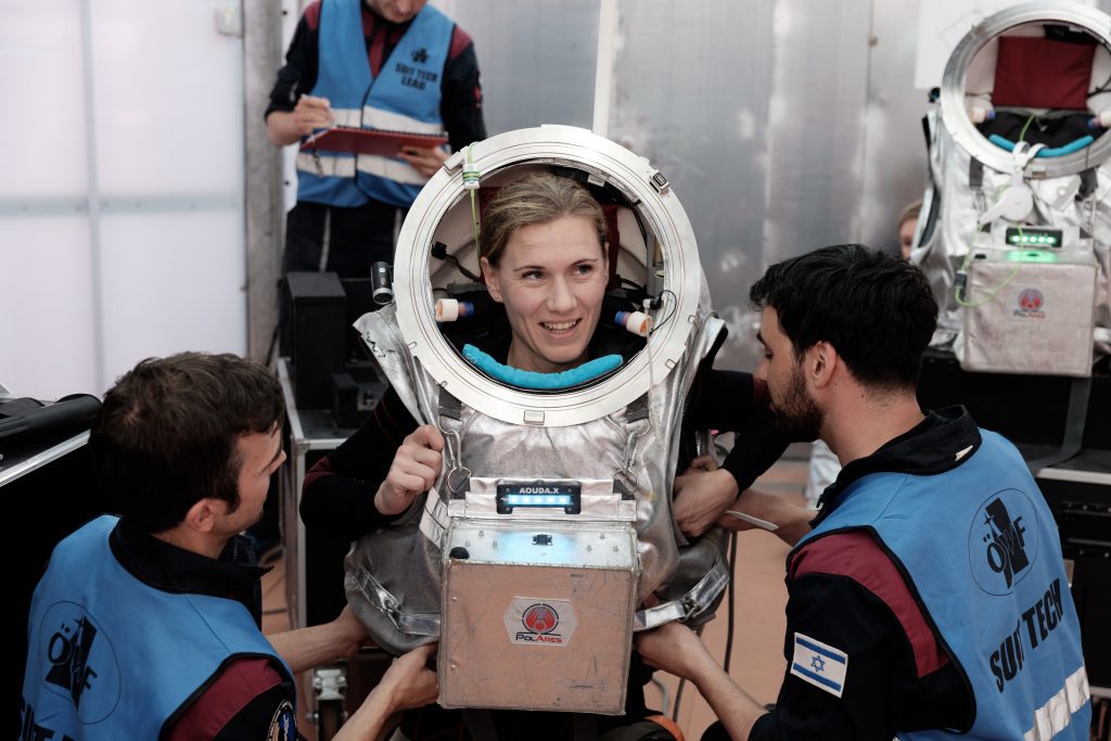 Nach den harten Prüfungen, Tests und Untersuchungen erhält Mehlis schließlich kurz vor Weihnachten 2018 die Zusage: »Du bist dabei, wir haben uns für dich entschieden.« Mehlis ist die einzige Frau, zu ihrem Team gehören Ärzte, Physiker, ein Raumfahrtingenieur, ein IT-Spezialist und ein Neurowissenschaftler. Die Ausbildung beginnt in Innsbruck, wo das ÖWF sitzt. Neben den wirklichen Tests und Übungen mit den Raumanzügen enthält die Ausbildung auch Grundlagen in Geologie, Astrophysik, PR-Kompetenzen und Fotografie – potenzielle Marsreisende müssten etliche Kompetenzen vorweisen können. Es gibt sogar Trainings darin, die Handschuhe zu benutzen. Klingt banal, leuchtet aber ein: „Ich ziehe die drei Schichten an und versuche, ein magnetisches Molekülmodell zusammenzusetzen, während ich auf einem Wackelboard stehe. Nach nur einer halben Stunde spüre ich jeden Muskel in meinem Körper. Die Übung vermittelt mir eine erste Idee von der Herausforderung, einfache Bewegungen in einem Raumanzug auszuführen.“